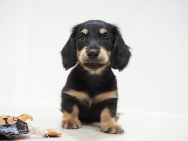 ミニチュア・ダックスフンド(ドイツ) Dachshund お手入れ:★★★★ し つ け :★★★★★ 食 欲:★★★★ 癒し度数:★★★★ お店から:好奇心旺盛で甘えん坊なダックス。家族の中での存在感は抜群です! 食いしん坊な子が多いのでメタボにならないように気を付けましょう! 父:ミニチュアダックス3.0㎏レッド/母:ミニチュアダックス3.0㎏ブラックタン |