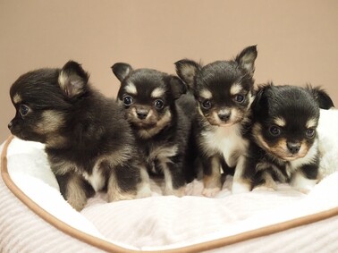 チワワ(メキシコ) ロングコート お手入れ:★★★ し つ け :★★★ 食 欲 :★★ 癒し数数:★★★★★ お店から:愛玩度ナンバー1!!元気いっぱいな小さな体で飼い主さんを癒してくれます。多頭飼いもOKです。 父犬:ゴマ2.5㎏(ブラックタン)/母犬:せり2.5㎏(ブラックタ&ホワイト) |